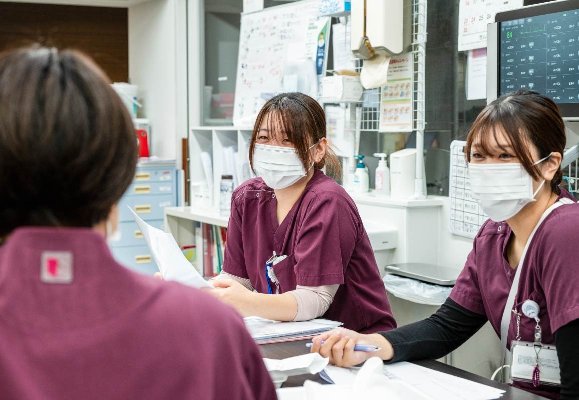 スタッフは20代から30代が中心でハツラツとした職場。子育て中の看護師も多く、復職後の時短勤務はお子さんが小学校に入るまで利用できます。始業・終業時刻も3パターンから選択可能。また、同院の5つの理念はカードにしてスタッフが常に持ち歩いています。「そのひとつ『感謝し感謝される心を持つ』が浸透しているので、お互いに思いやり協力しあっています」ライフステージが変化しても安心して働けます。