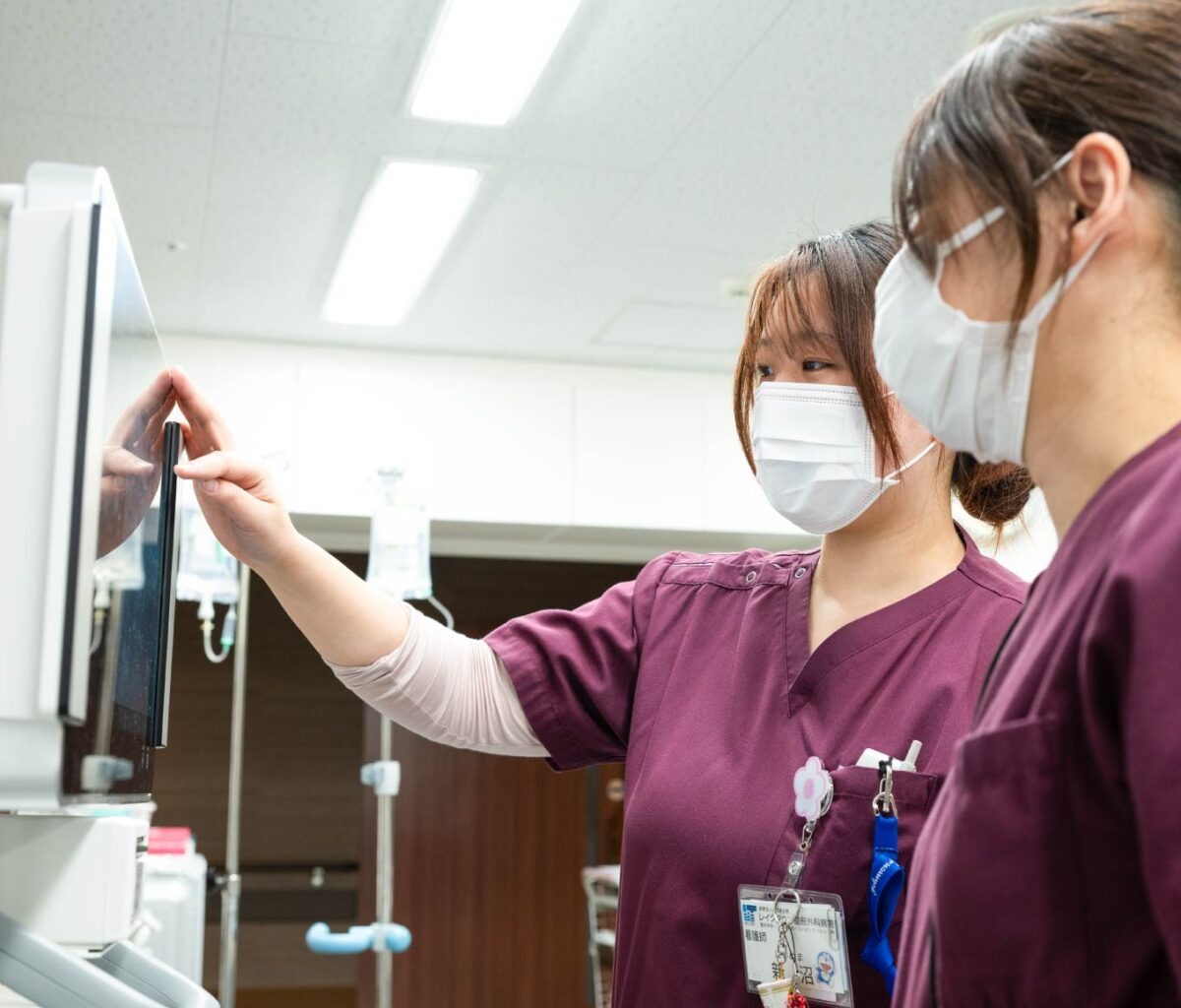 整形外科は転倒リスクが高いため、環境確認や患者さまの動作見守りが欠かせません。看護助手、リハビリスタッフ、医師と連携しながら、転倒予防や適切な介助方法の共有を行い、安全に配慮したケアを提供します。